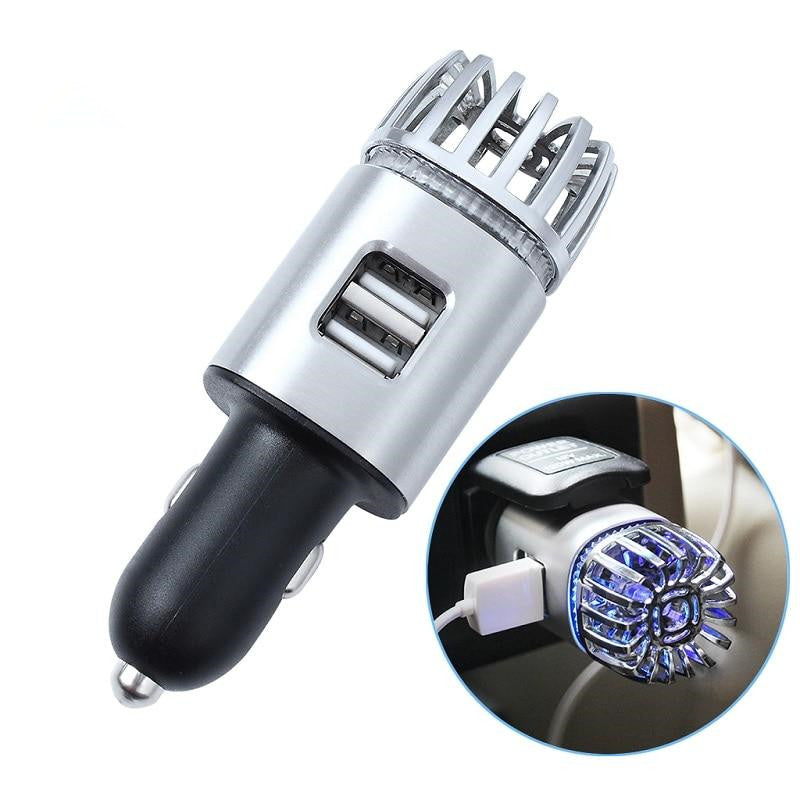 This ionic car air purifier can remove dust,smoke and PM2.5 floating particles;it can also kill the harmful bacteria and viruses to protect your health;moreover,it can drive out formaldehyde,benzene and other harmful gases or unpleasant odors,Keep the air in the car fresh.Description:Why do you need an inoic car air purifier?There are a lot of floating particles such as dust and harmful gases such as formaldehyde and benzene in the car. If you smoke in the car, there will be residual smoke.All of these will have an impact on your health,at the same time, it will also make you breathless, fatigued and drowsy, resulting in inattention and causing great risks to driving safety.Therefore, it is very important to keep the air in the car fresh.When we go to forests, beaches, waterfalls, etc., we feel refreshed,and this is the role of air anion.Ionic car air purifier was invented according to this principle,so it can purify the air naturally and efficiently,and it can keep people refreshed, calm and concentrated at the same time.This is a must in the car and a great gift for friends or families.Material:Aluminum AlloySize:3.5*3.5*10.5cm/1.38*1.38*4.13inchWeight:40g(net weight)120g(gross weight)Color:Silver, CopperInput:12(V)Output:5V/2.1AAnion Quantity:5,600,000pcs/cm^3Ozone Concentration:≤0.05ppmOperating Temperature:-10℃~40℃(14℉~104℉)Storage Temperature:-20℃~60℃(-44℉~140℉)