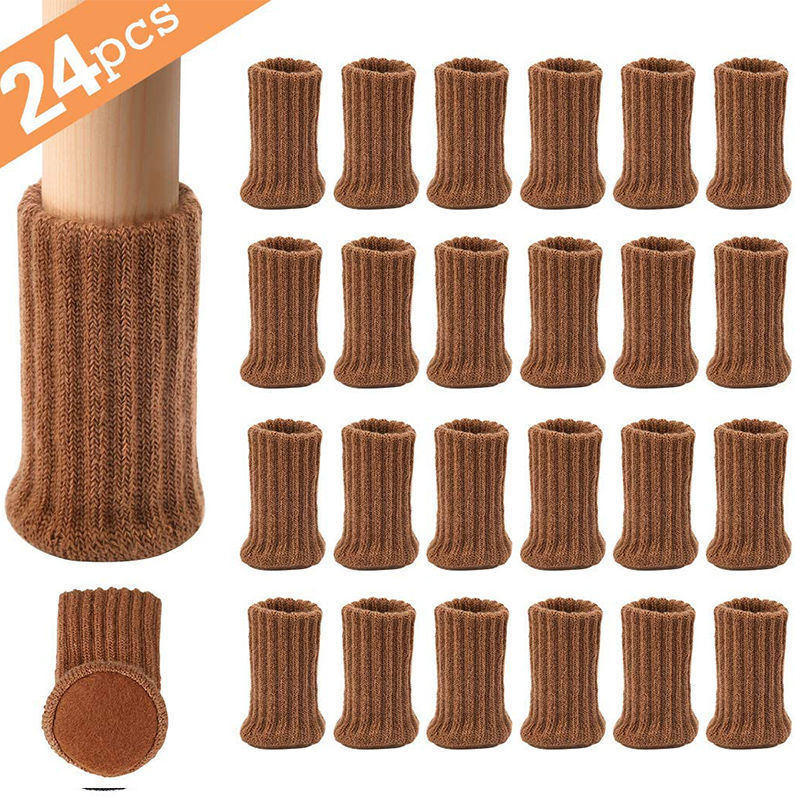 24 PCS Knitted Chair Leg Socks High Elastic Furniture Socks Pads Non-Slip Furniture Feet Caps Covers for Protect Floor
