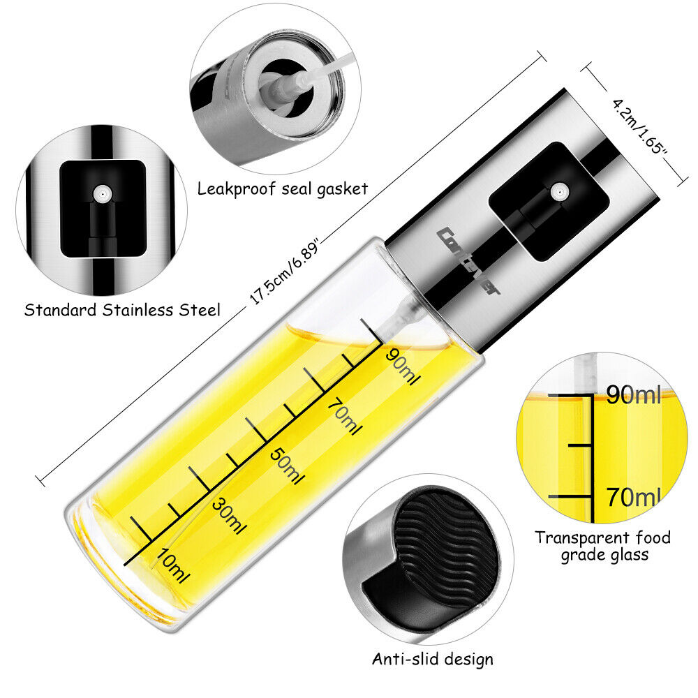 This is a perfect spray-type vinegar oil bottle, which replaces the non-aerosol oil sprayer that uses the brush for oiling during roasting, frying, roasting, and cooking, and does not contain any harmful propellants or chemicals.