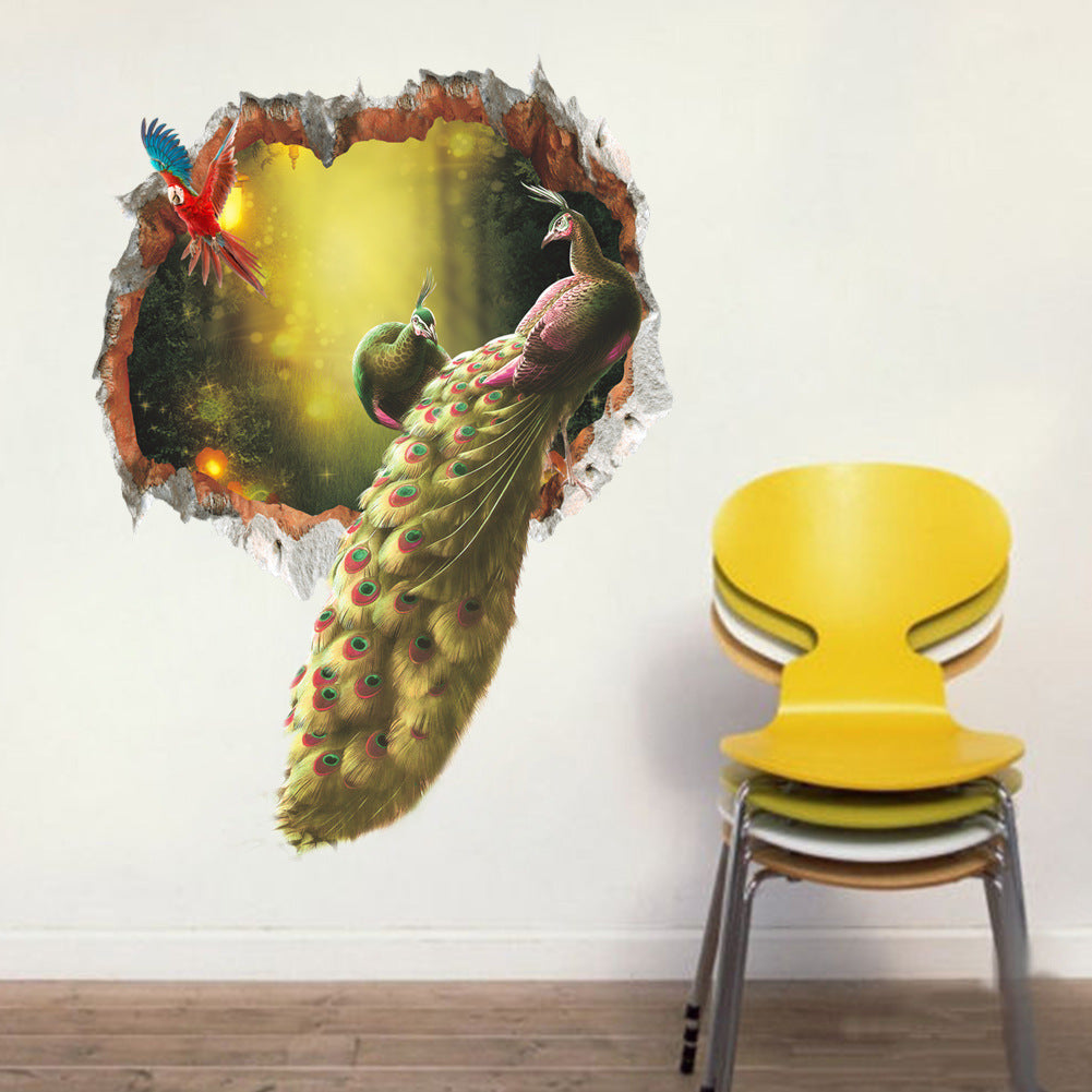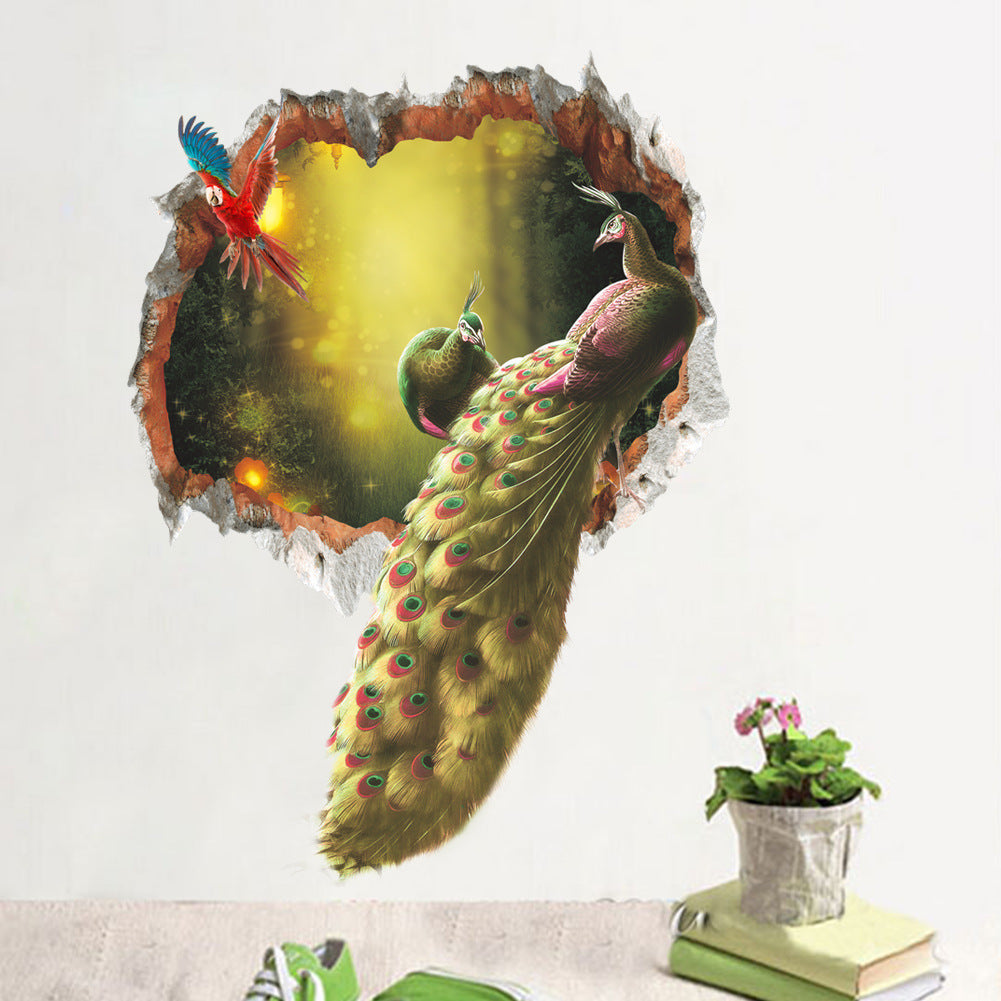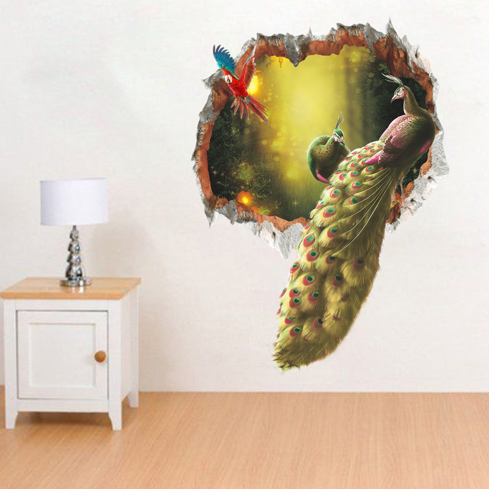 3d Peacock Forest Broken Wall Bedroom TV Backdrop Wall Decorative Removable Wall Sticker