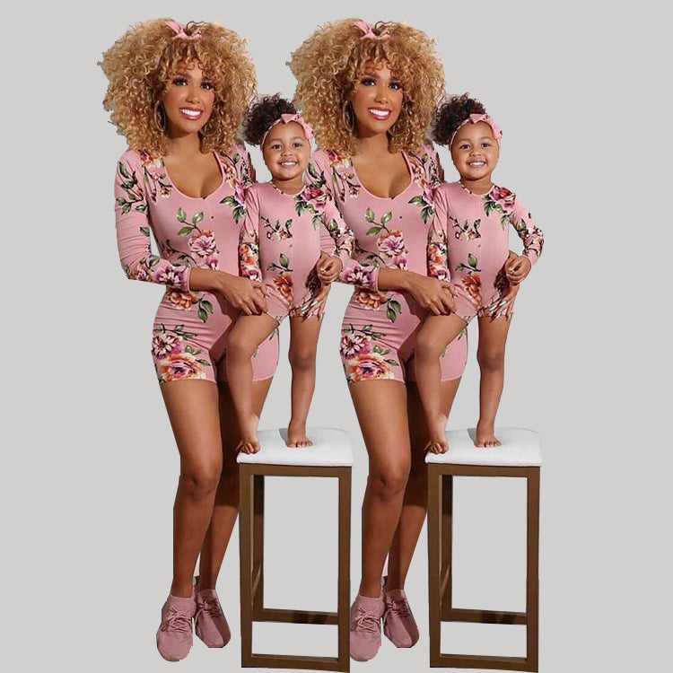 A199 Cross Border Women's Summer New Short Sleeve Shorts Parent Child Suit Amazon