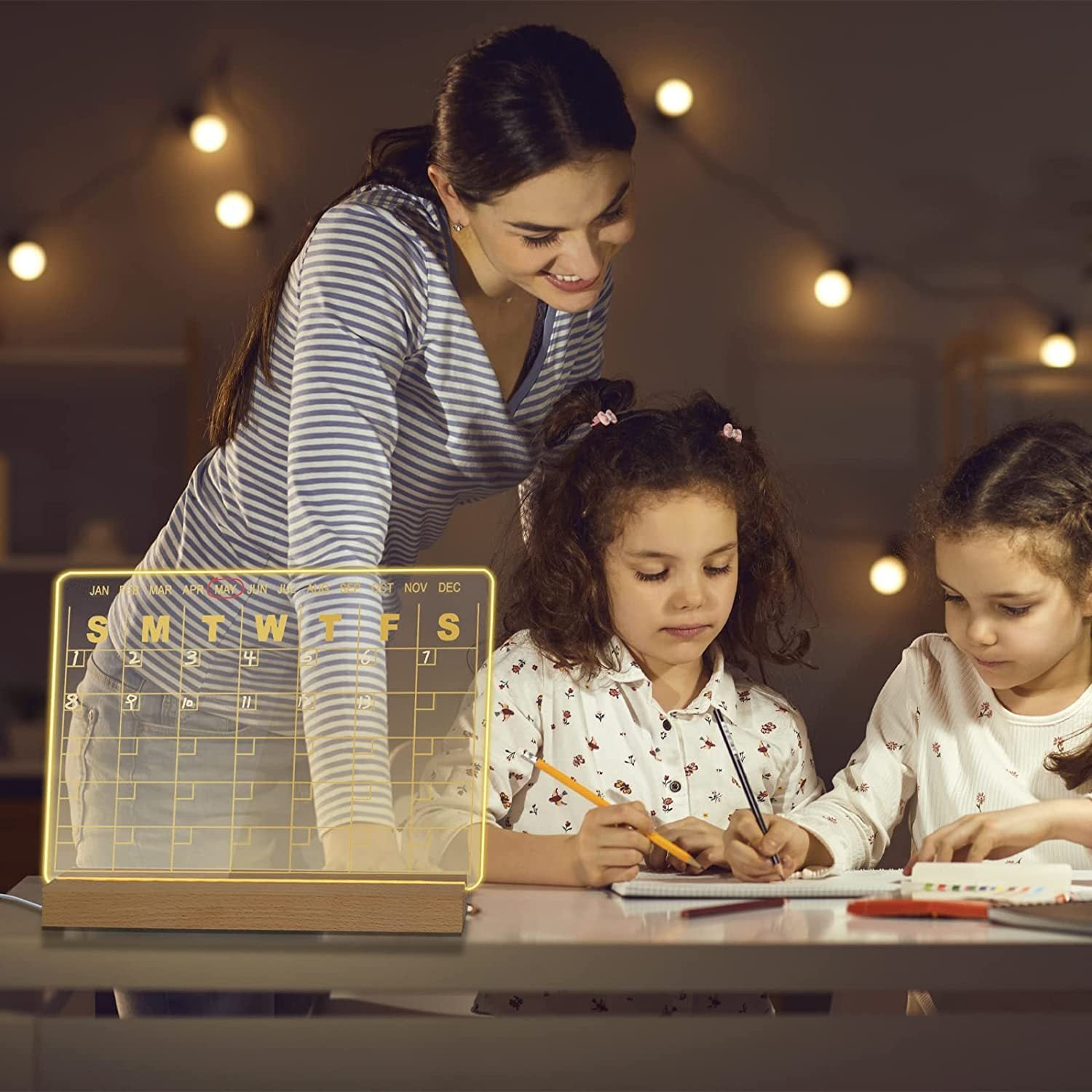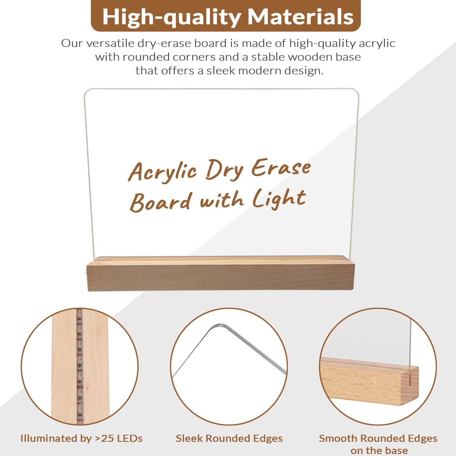 Acrylic Dry Wipe Board With LED Light Transparent Desktop Calendar White Holder
