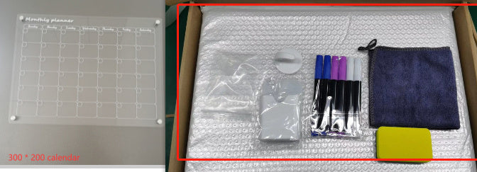 Note Board *1 Pen*5 Magnetic pen case *1 Rag *1 Hook*1 Non-marking adhesive*1 Paper box *1