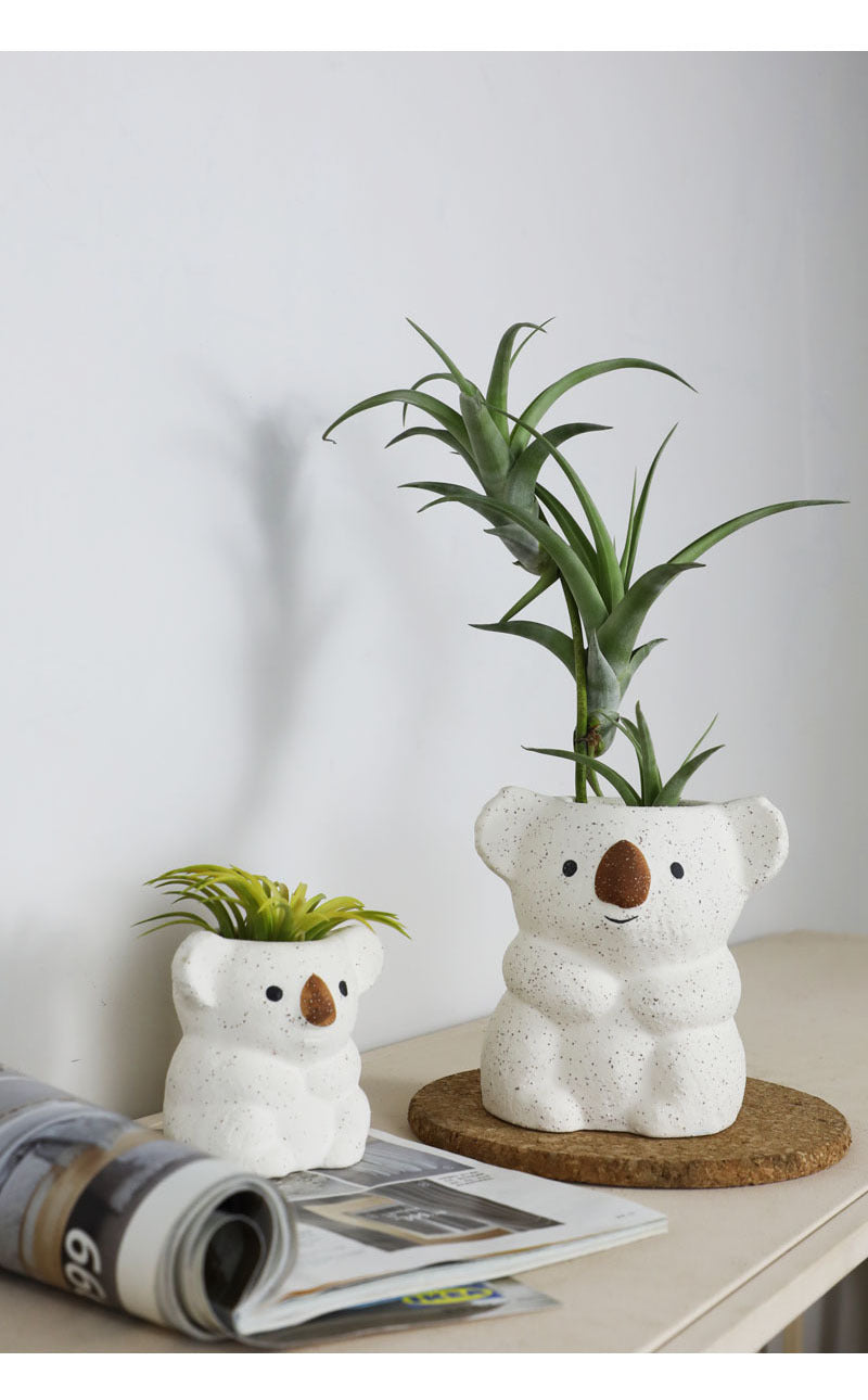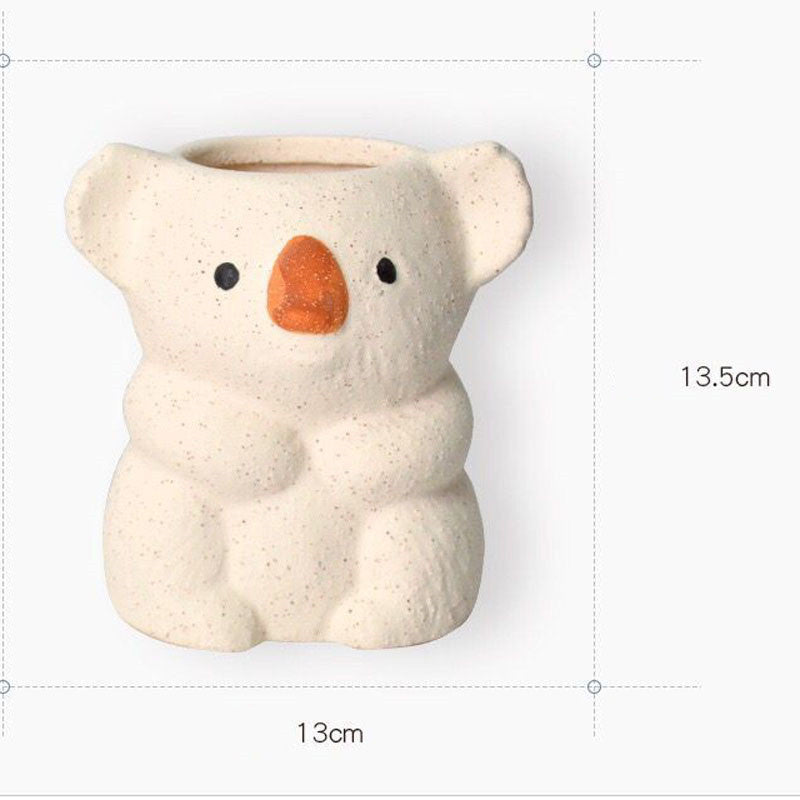 Color: A single ceramic koala without plants, a single ceramic koala without plants