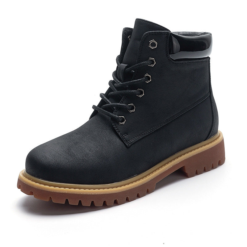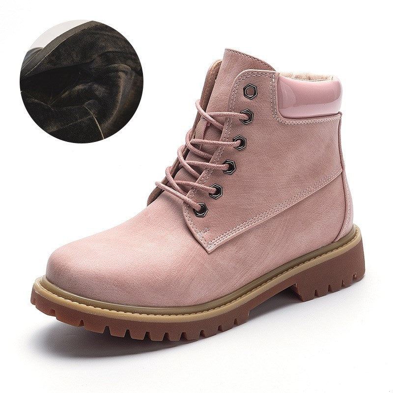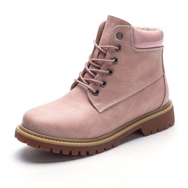 All-match Flat Thick-heeled British Style Pink Short Boots