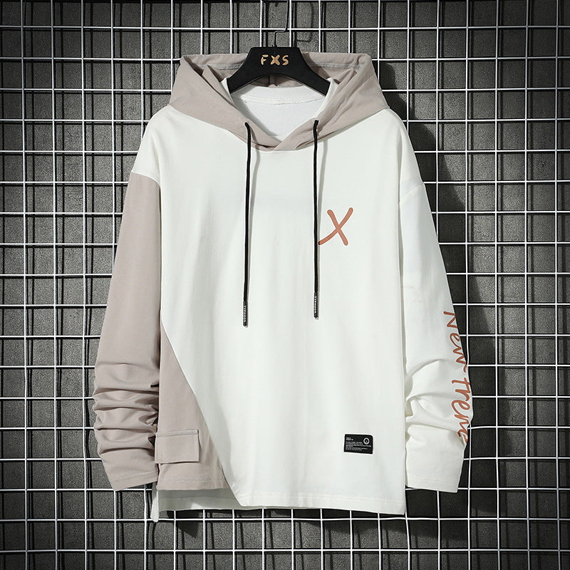 URBAN STYLE ALL SEASON Hooded Stitching Contrast Color Sweater Jacket Male Plus SIZE