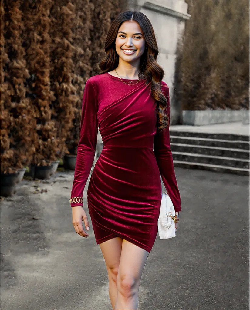 New beautiful black Autumn And Winter Round Neck Dress for women