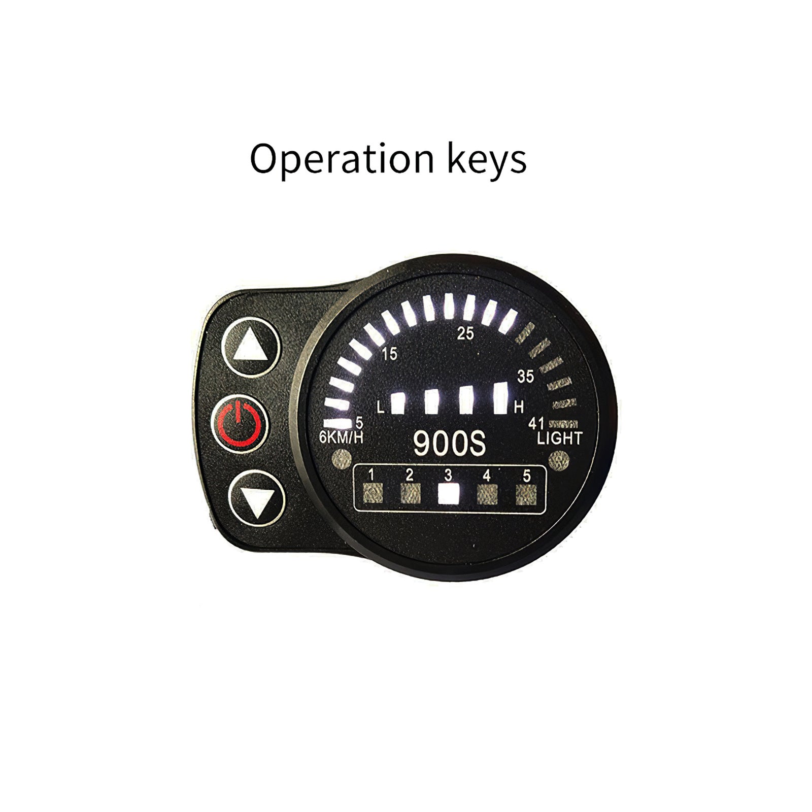 Nine-segment LED speedometer, display 0-40km/h speed, 1-5 PAS level + 4 battery capacity LEDs, when the battery is undervoltage, the undervoltage indicator flashes.
