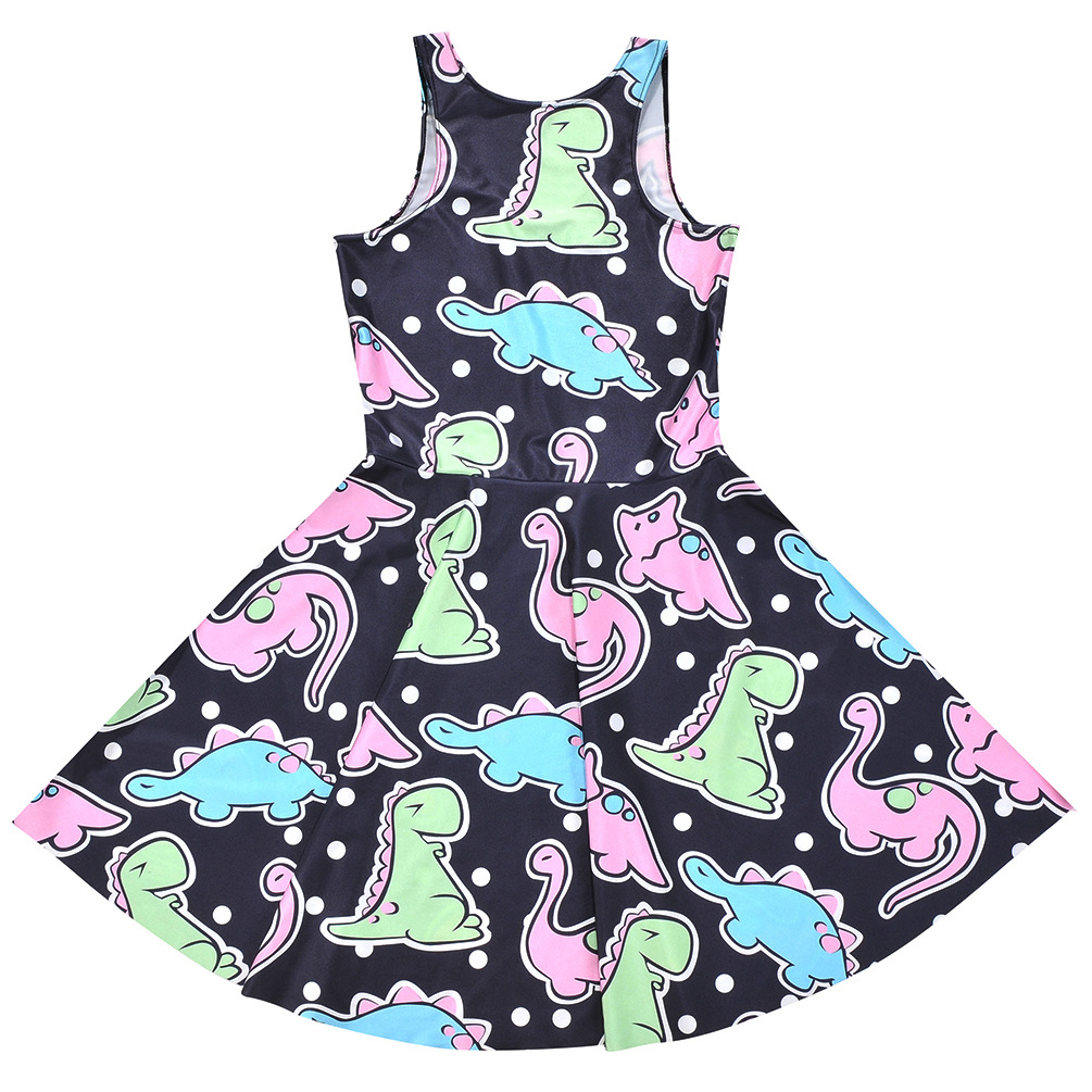 Black Cartoon Color Dinosaur Pleated Umbrella Skirt