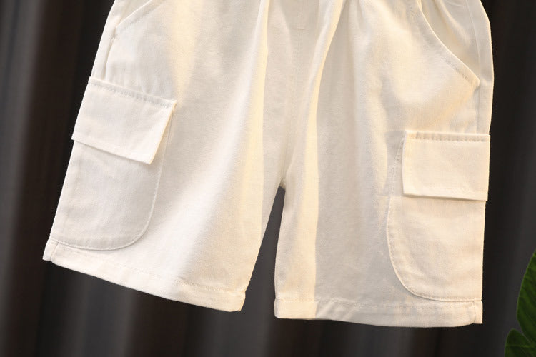 Boys' Summer Cute Stripes Solid Color Short-sleeved Shorts Two-piece Set