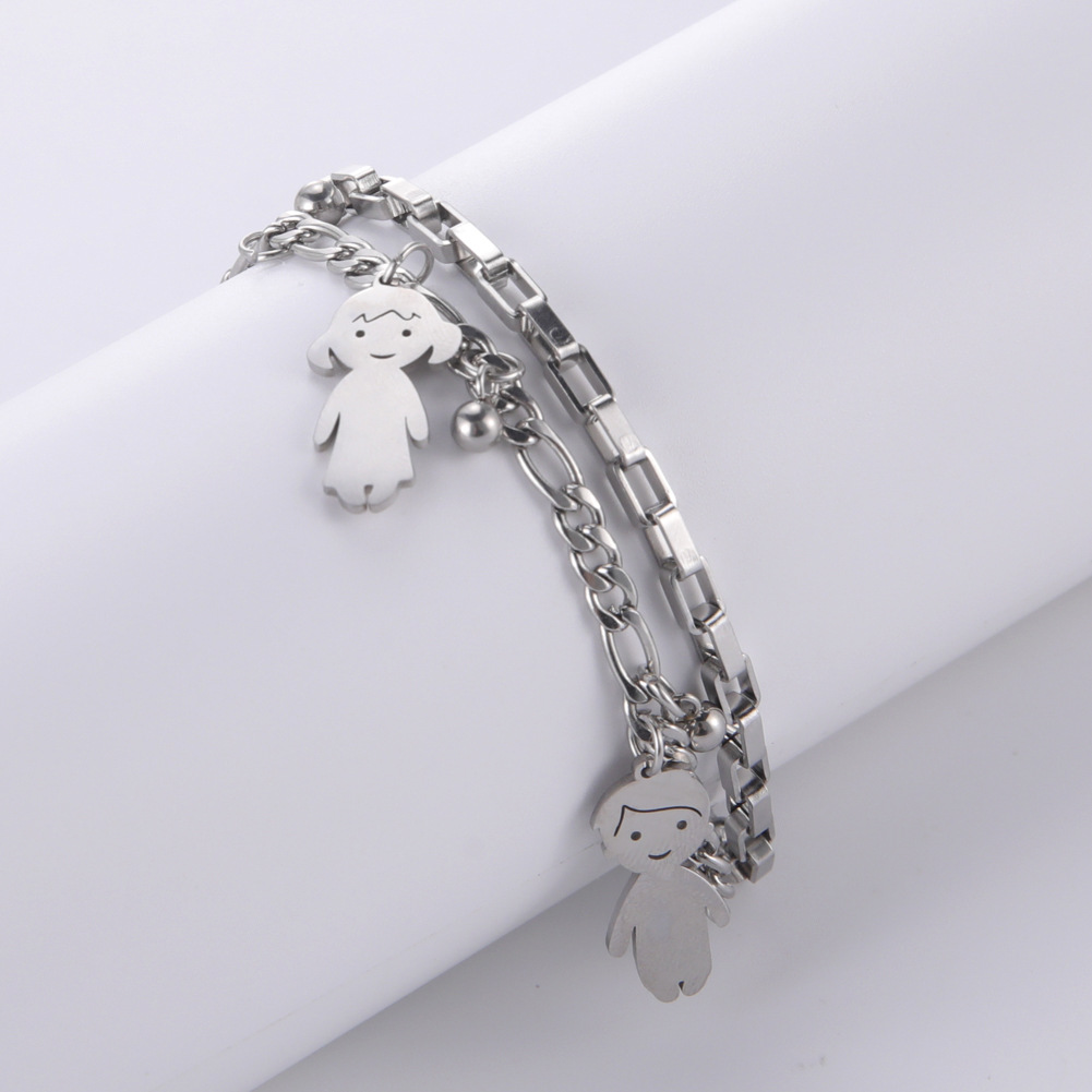 Cartoon Character Titanium Steel Ball Figaro Chain Double Layer Bracelet