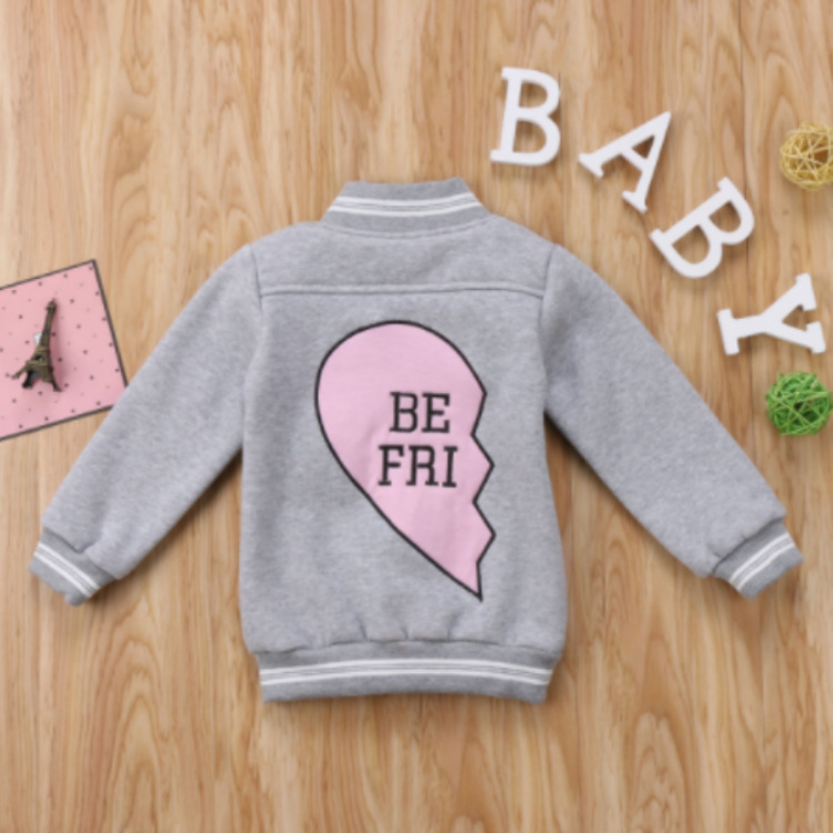 CHILDREN'S THICK COAT GREY LETTERS RIGHT HEART TOP