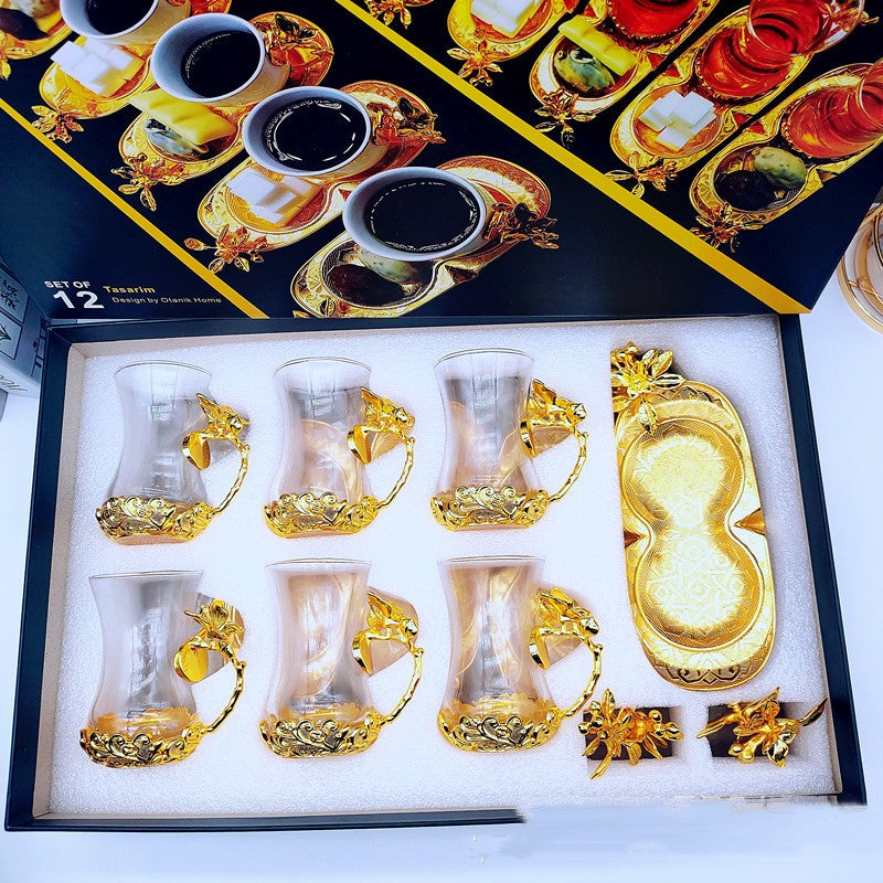 Color: [transparent] glass 6-cup 6-dish gift box, [dazzling] glass 6-cup 6-dish gift box, [amber] glass 6-cup 6-dish gift box, [smoke gray] glass 6-cup 6-dish gift box