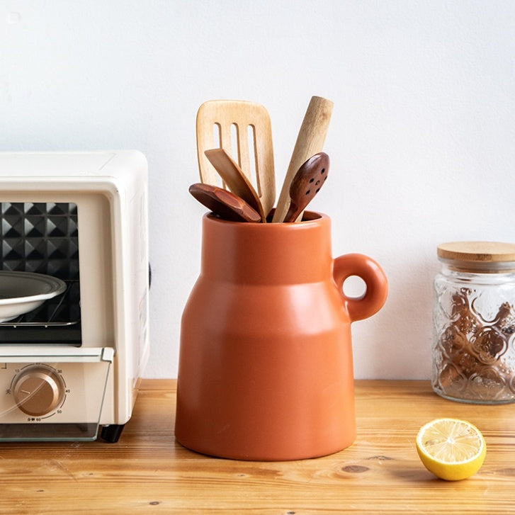 Creative Large Diameter Ceramic Storage Tank Art Single Ear Vase