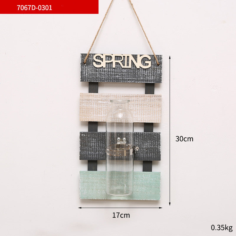Creative Plant Glass Vase Pastoral Wall Hanging Wooden Flower Arrangement Light Decoration Living Dining Room Glass Vase Wood
