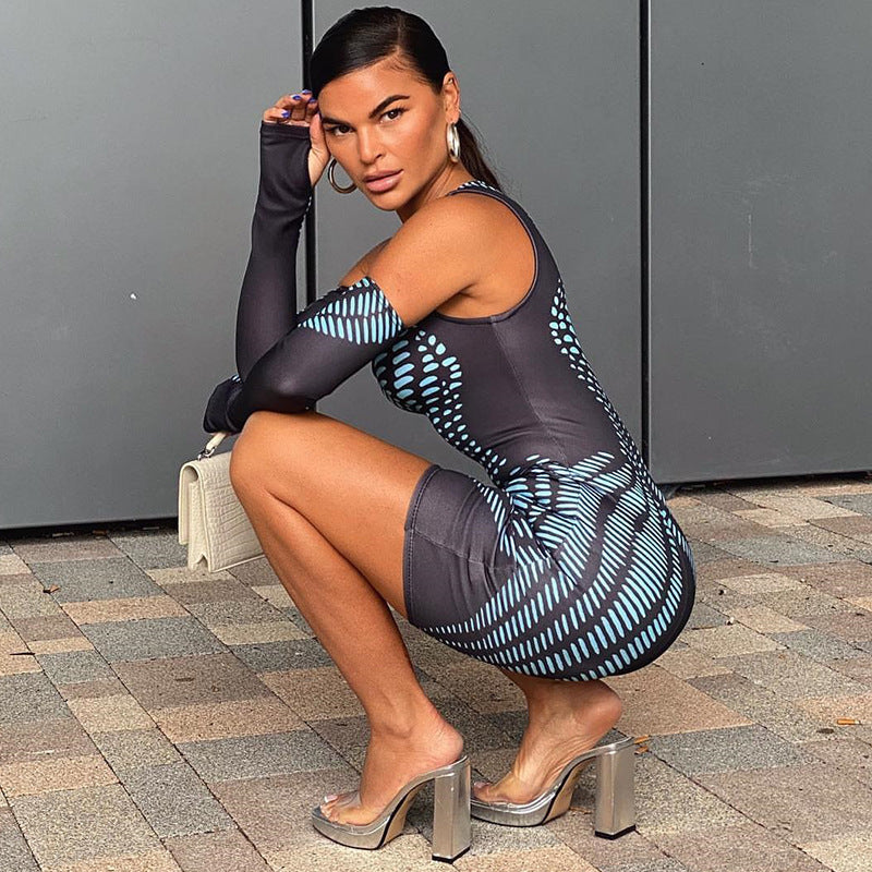 Crew Neck Digital Printing Gloves Hip Lifting Bodysuit