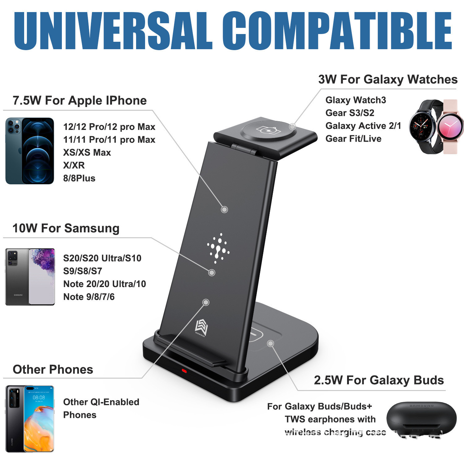 Mobile phone wireless charge output: 5W/7.5W/10W/15W Max