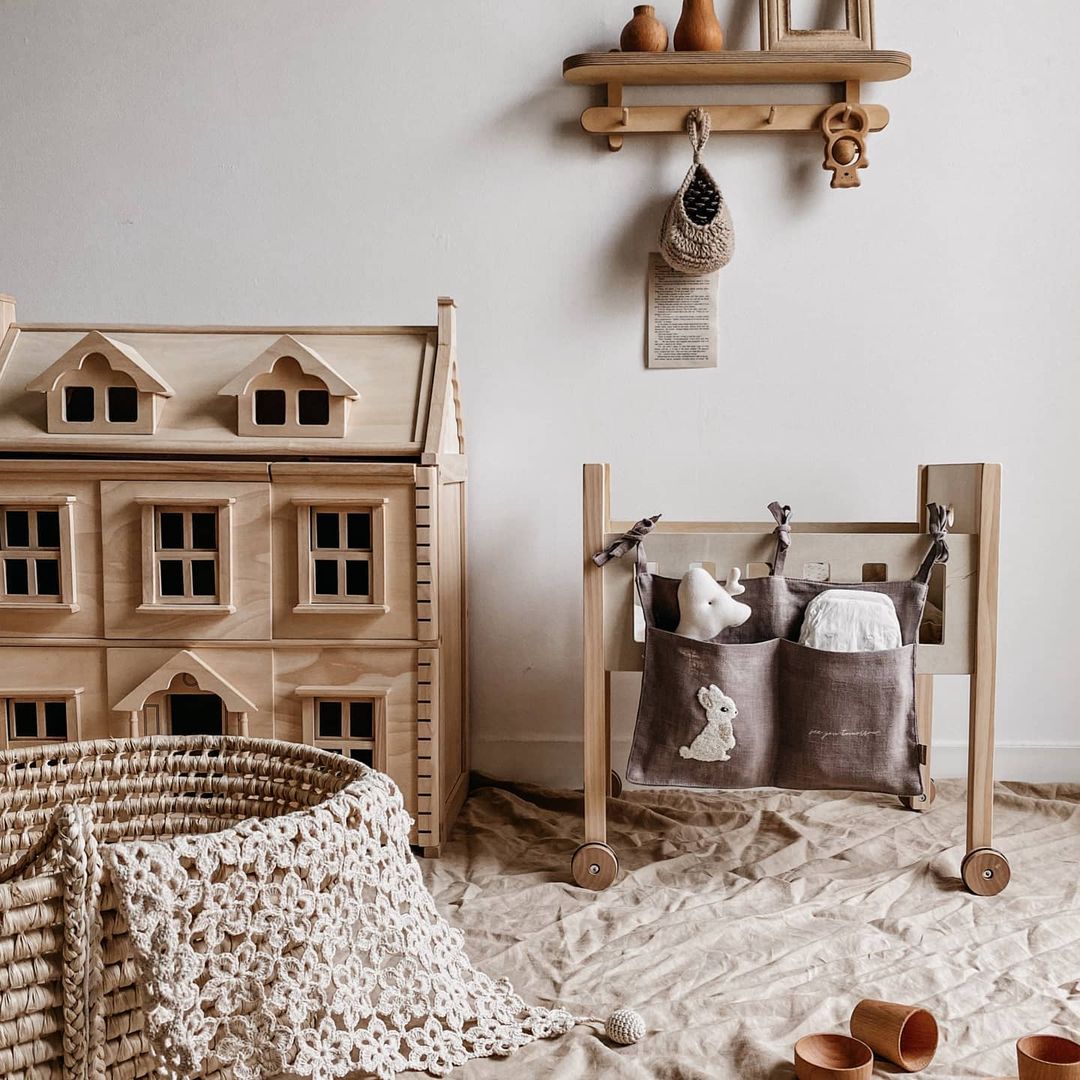 Embroidered Cotton And Linen Baby Bed Baby Carriage Seat Back Door Hanging Bag