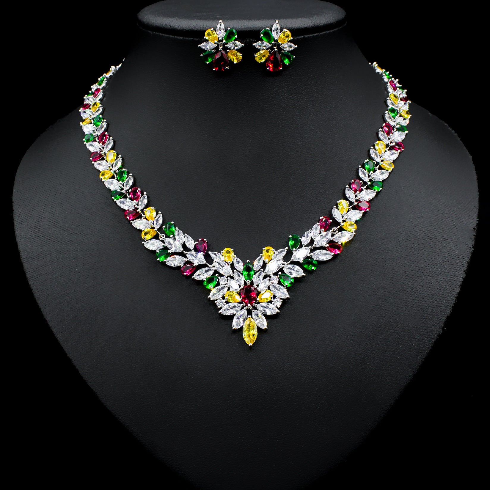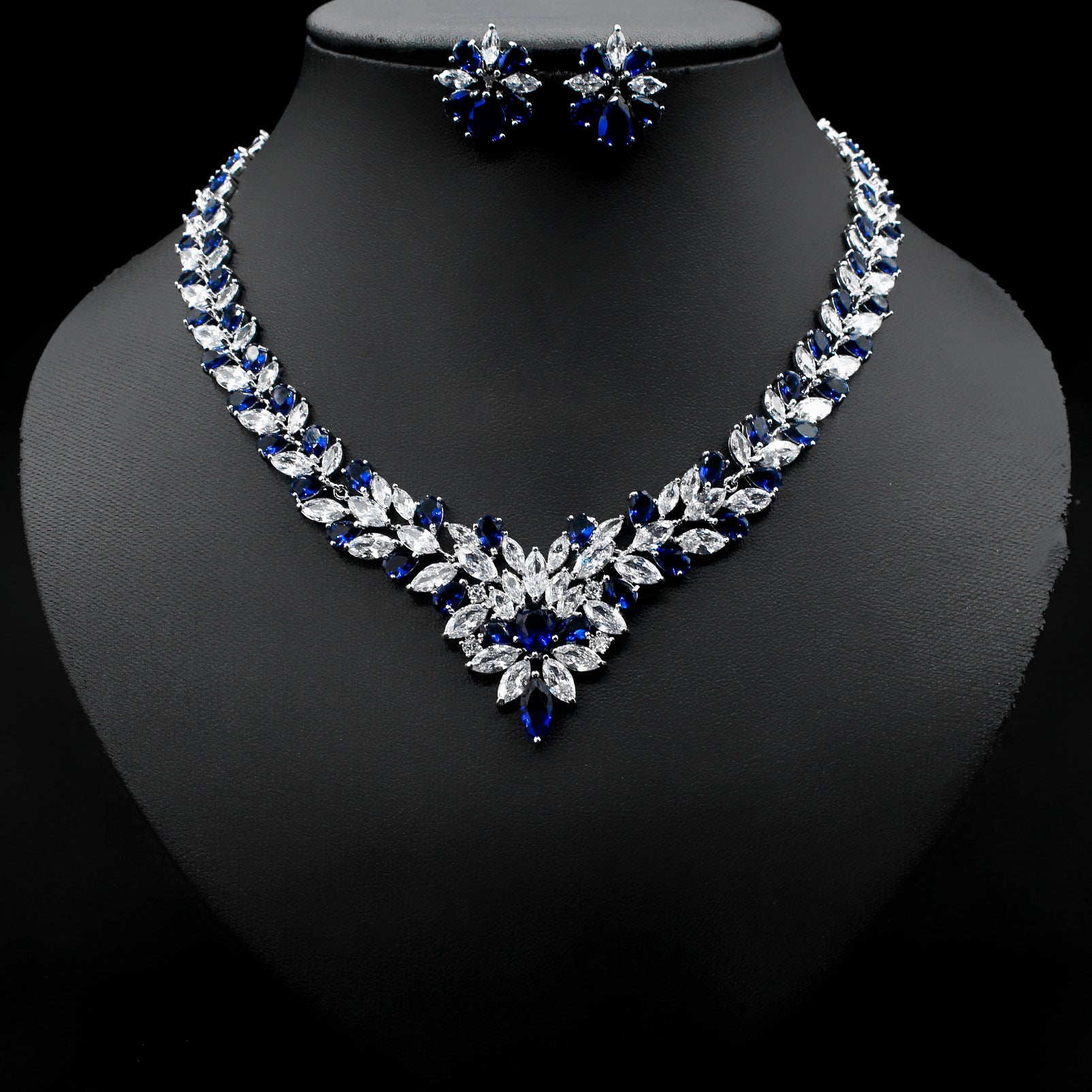 Fashion Ice Flower Earrings Zircon Necklace Set