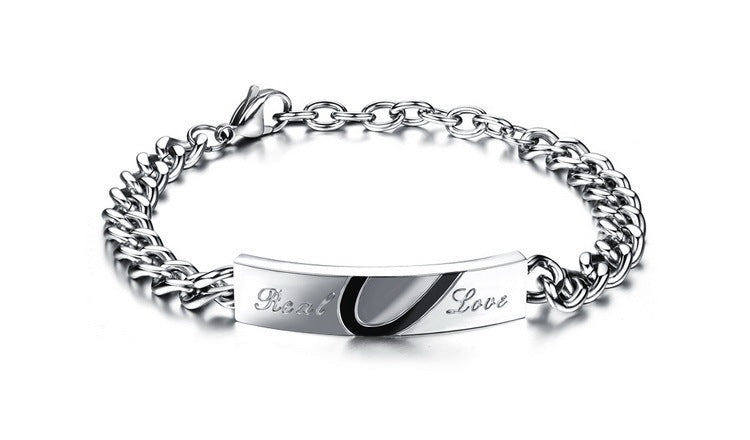 Fashion Love Black Rose Gold Peach Heart Couple Bracelet