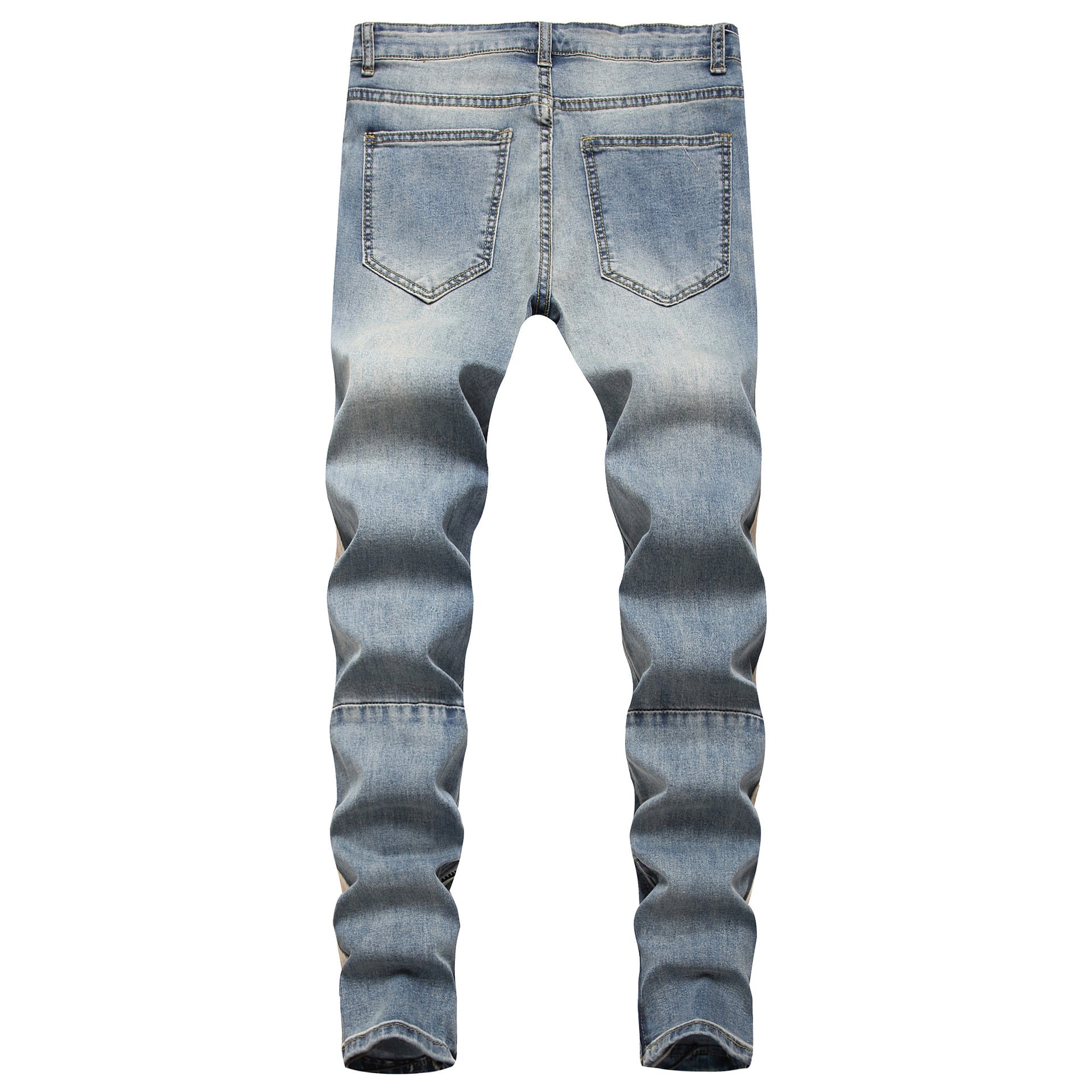 Trendy modern style for young Men's cream Striped Ripped in the knees blue Jeans