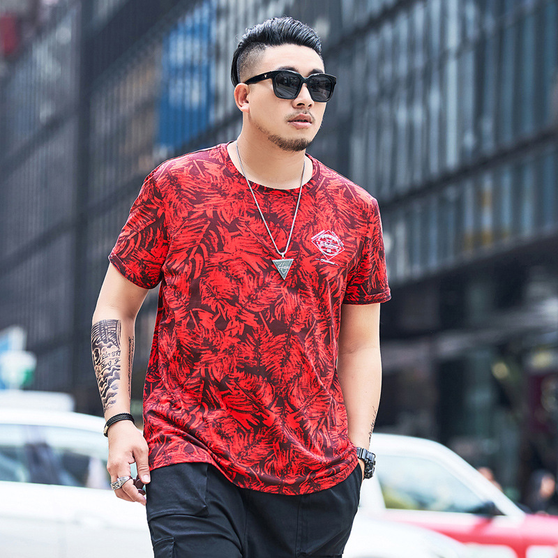 NEW LARGE plus size red CREATIVE ALL OVER PRINT DESIGN T-shirt FOR MEN