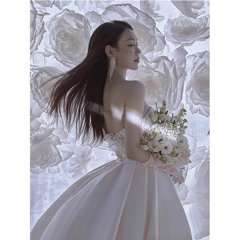 French-style Bride Lace Tube Top Satin Fishtail Trailing Wedding Dress