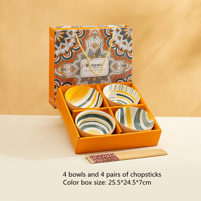 4 bowls and 4 chopsticks,