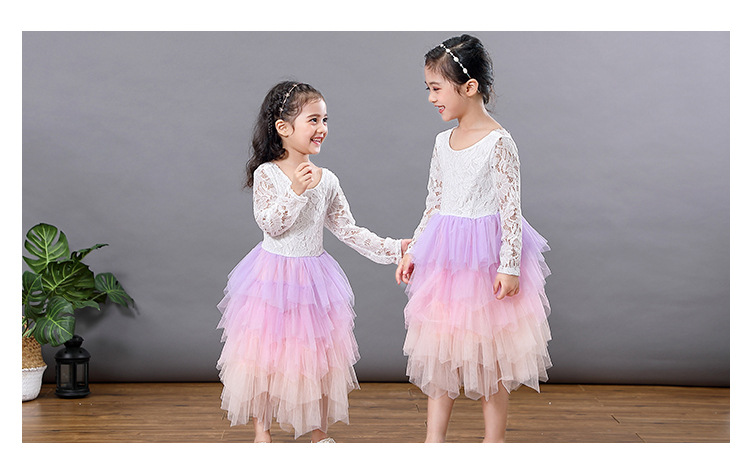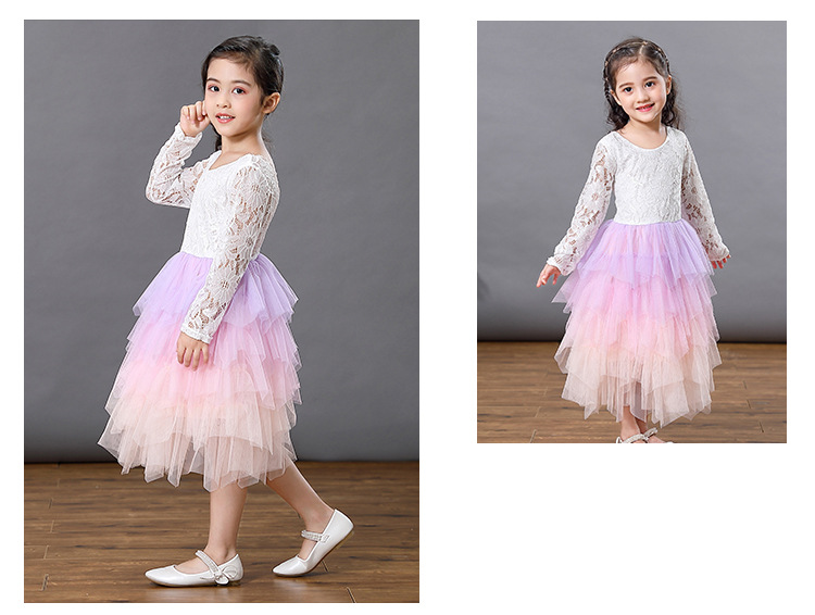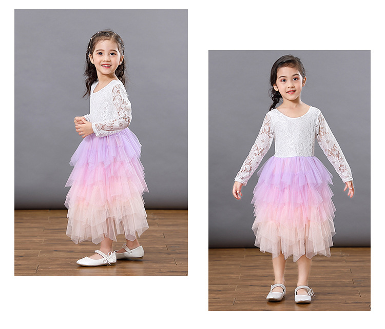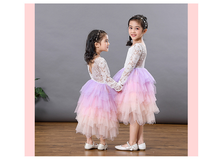 Girls Lace Backless Tutu Dress with Long Sleeves