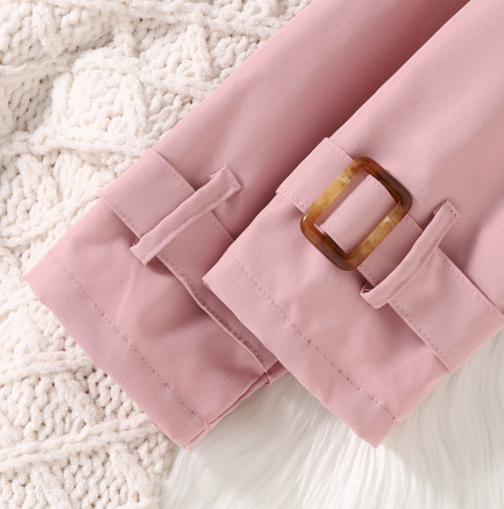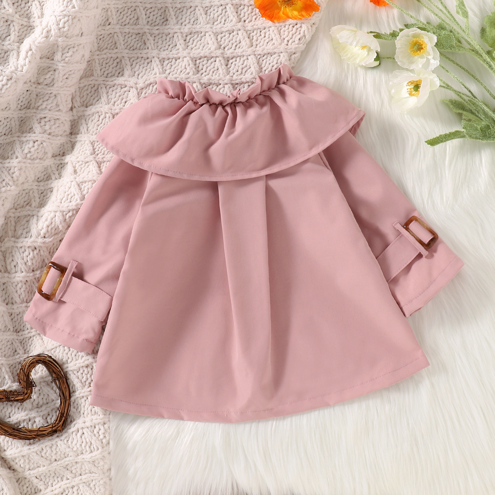 Girls' Lotus Leaf Collar Long Sleeve Trench Coat