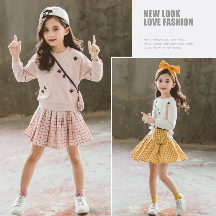 Girls Round Neck Pineapple Bag Two-piece Suit
