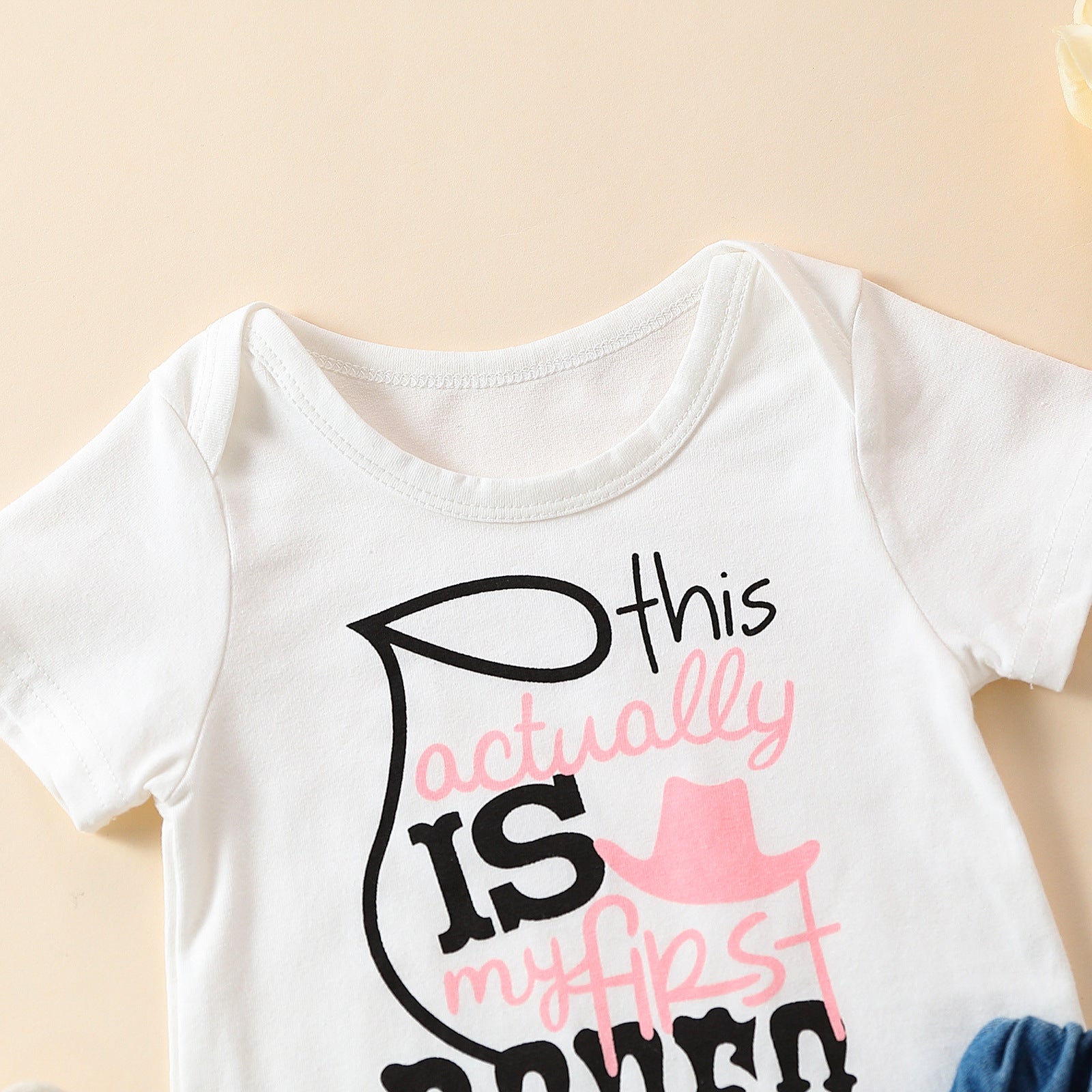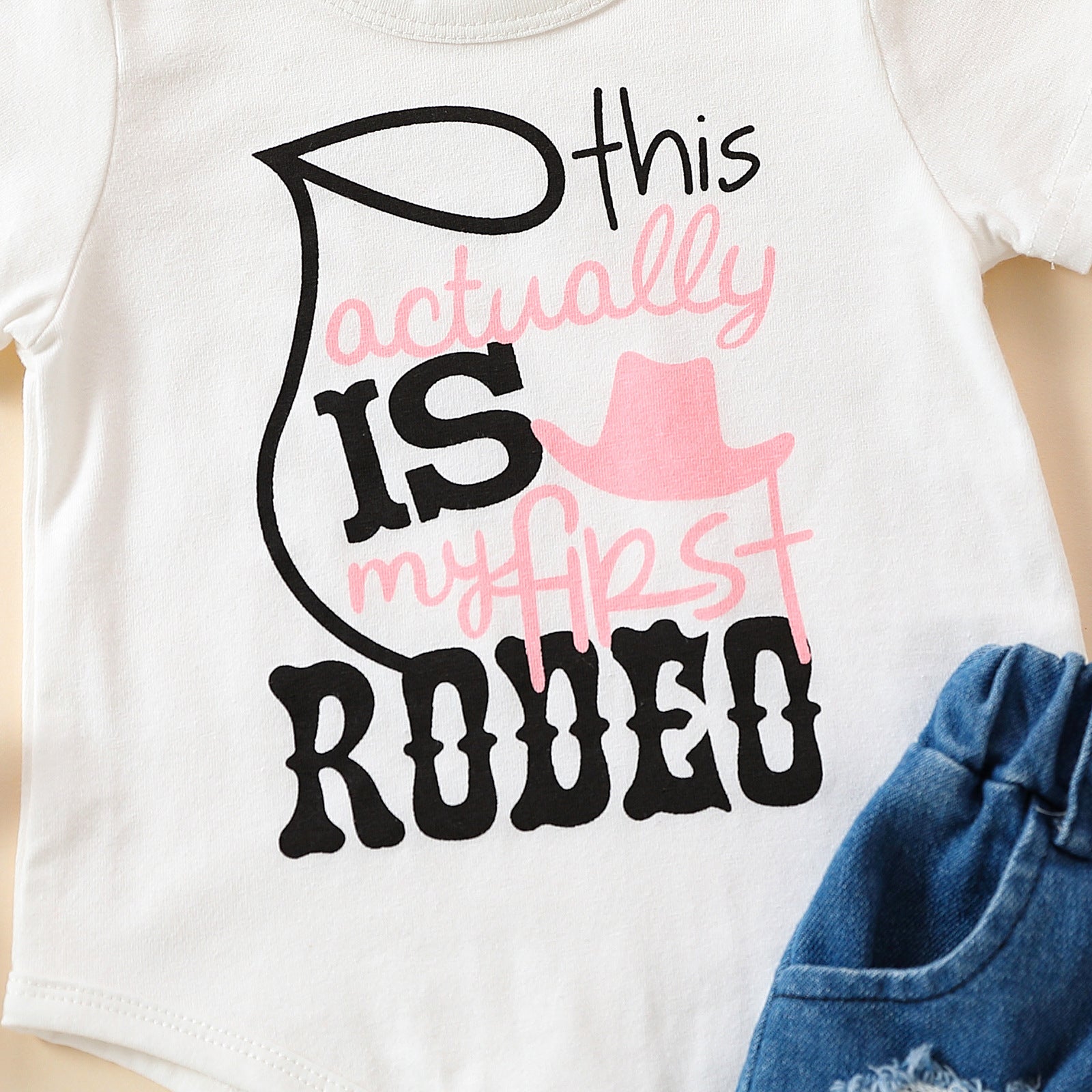 Girls' Summer Casual Suit Short Sleeved Kazakhstan Denim Shorts Two-piece Set