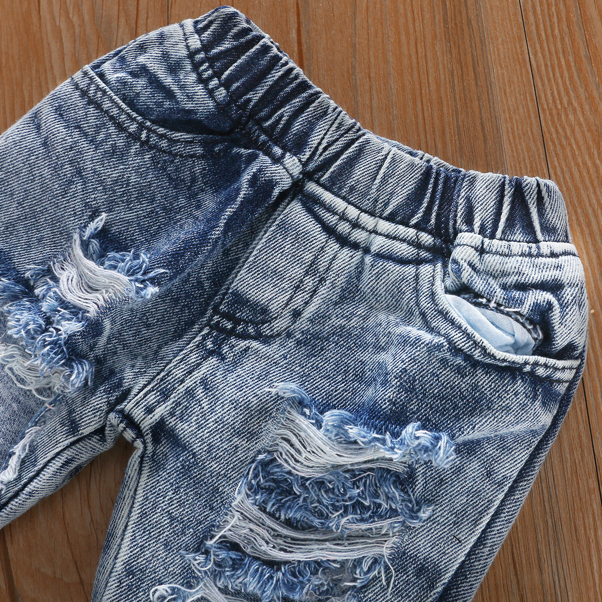 Girls' Woven Stretch Print Dot Cotton Denim Ripped Trousers Turban Three-piece European And American Cross-border Suit