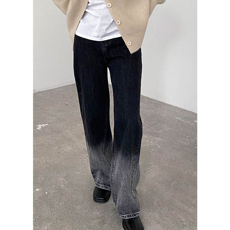 Gradient High Waist Washed Dark Skinny Washed Straight Jeans Trousers Women