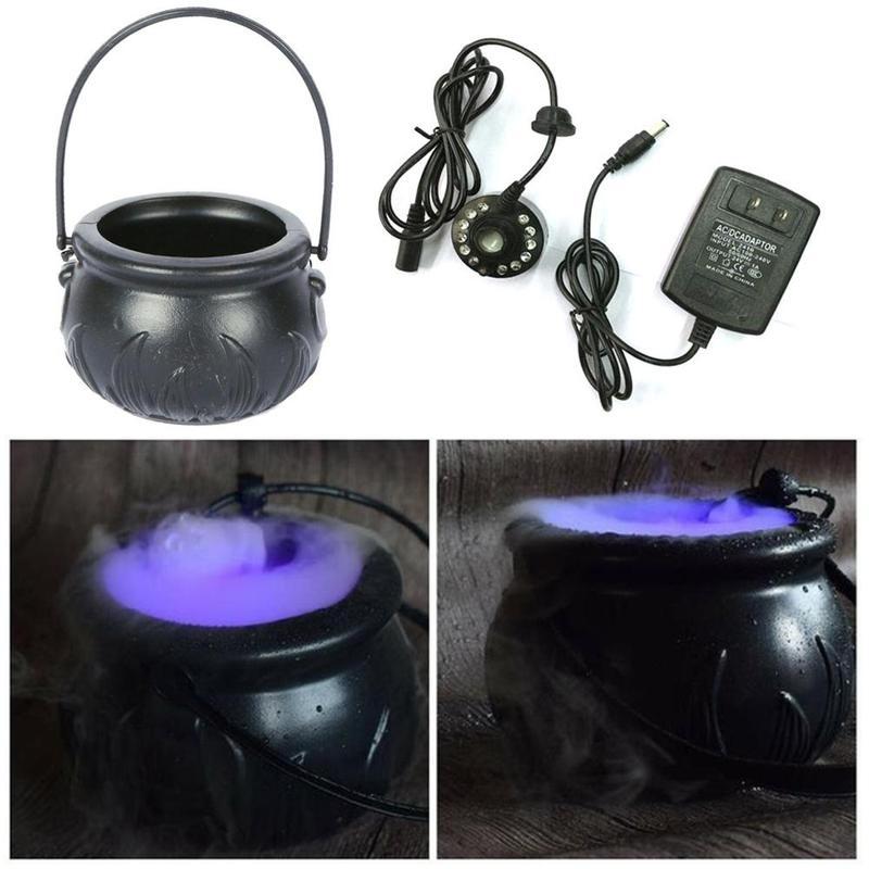 Halloween Witch Pot Smoke Machine LED Humidifier Color Changing Creepy Decor