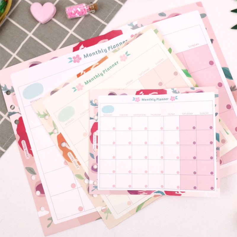 1picture:[A7] -20 large sheets-Floral monthly plan foldout