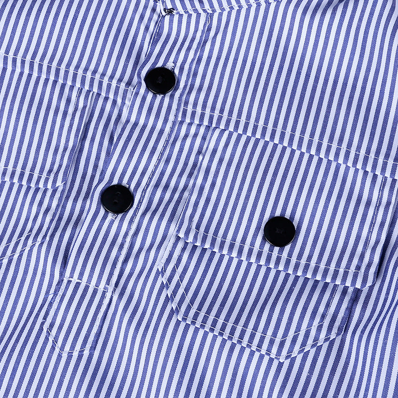Handsome boy's blue stripe shirt and jeans trousers suit