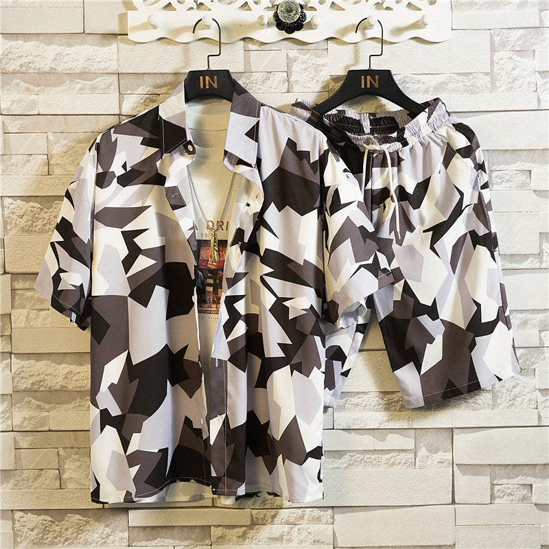 Holiday Suit Summer Hawaiian Short Sleeve Shirt Shorts Beach Pants Suit Large