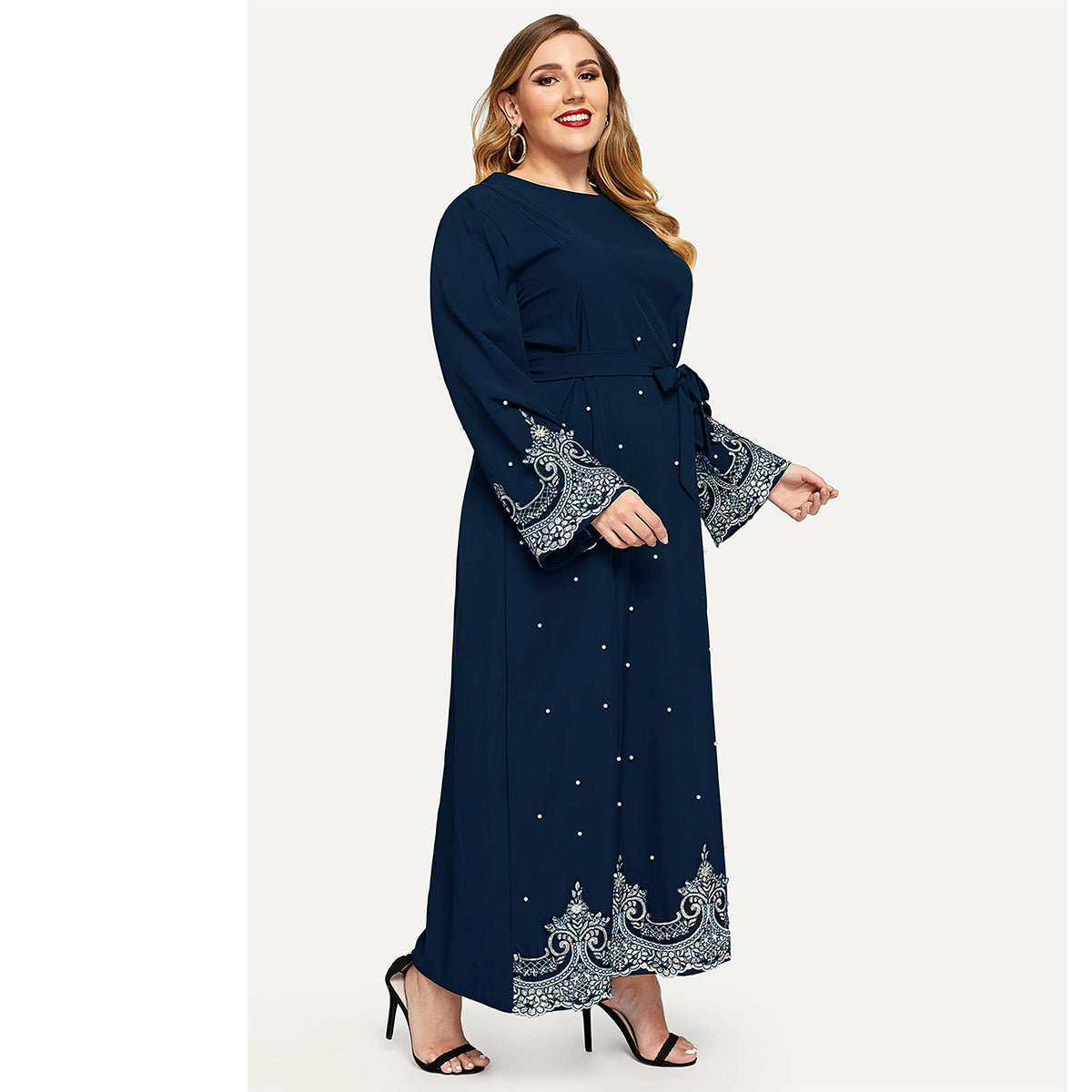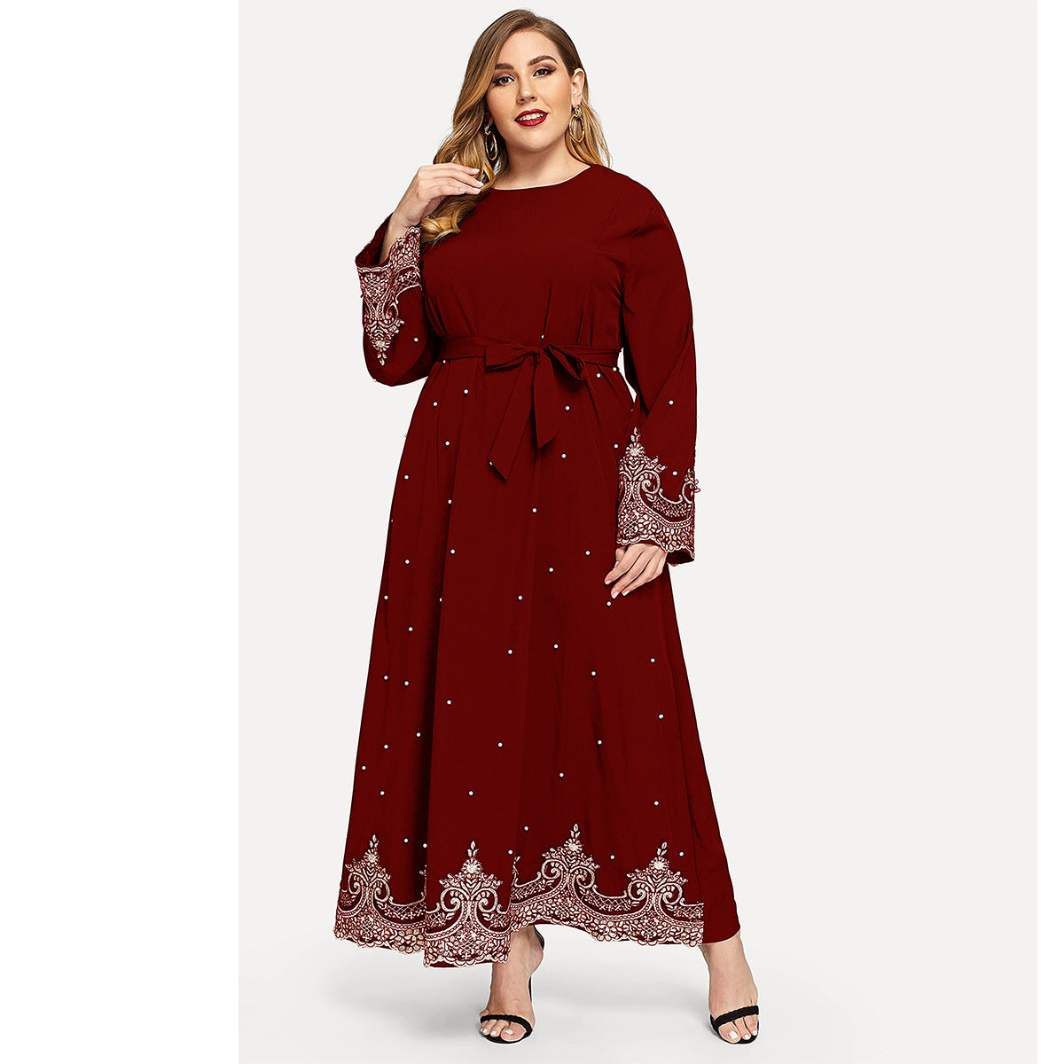 Hot Sale Embroidered Bead Long Sleeve Plus Size Women's Dress