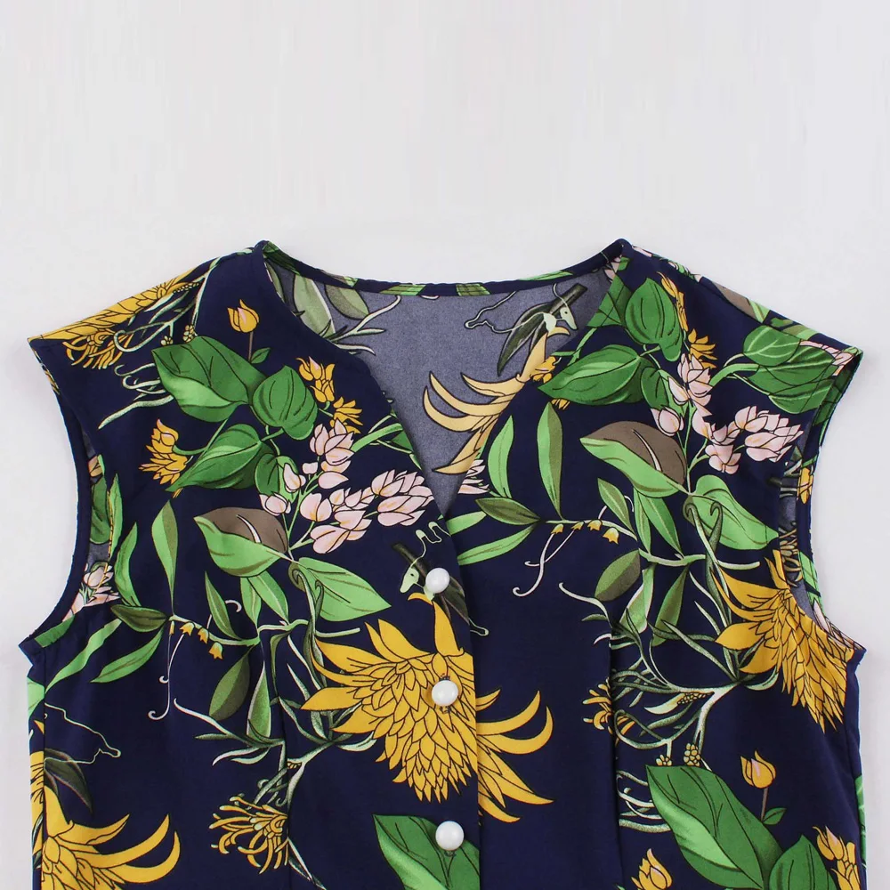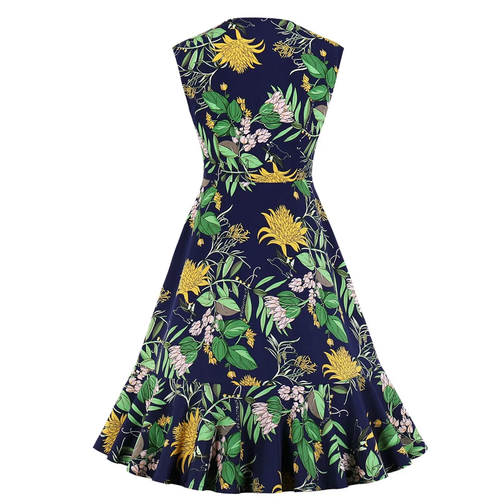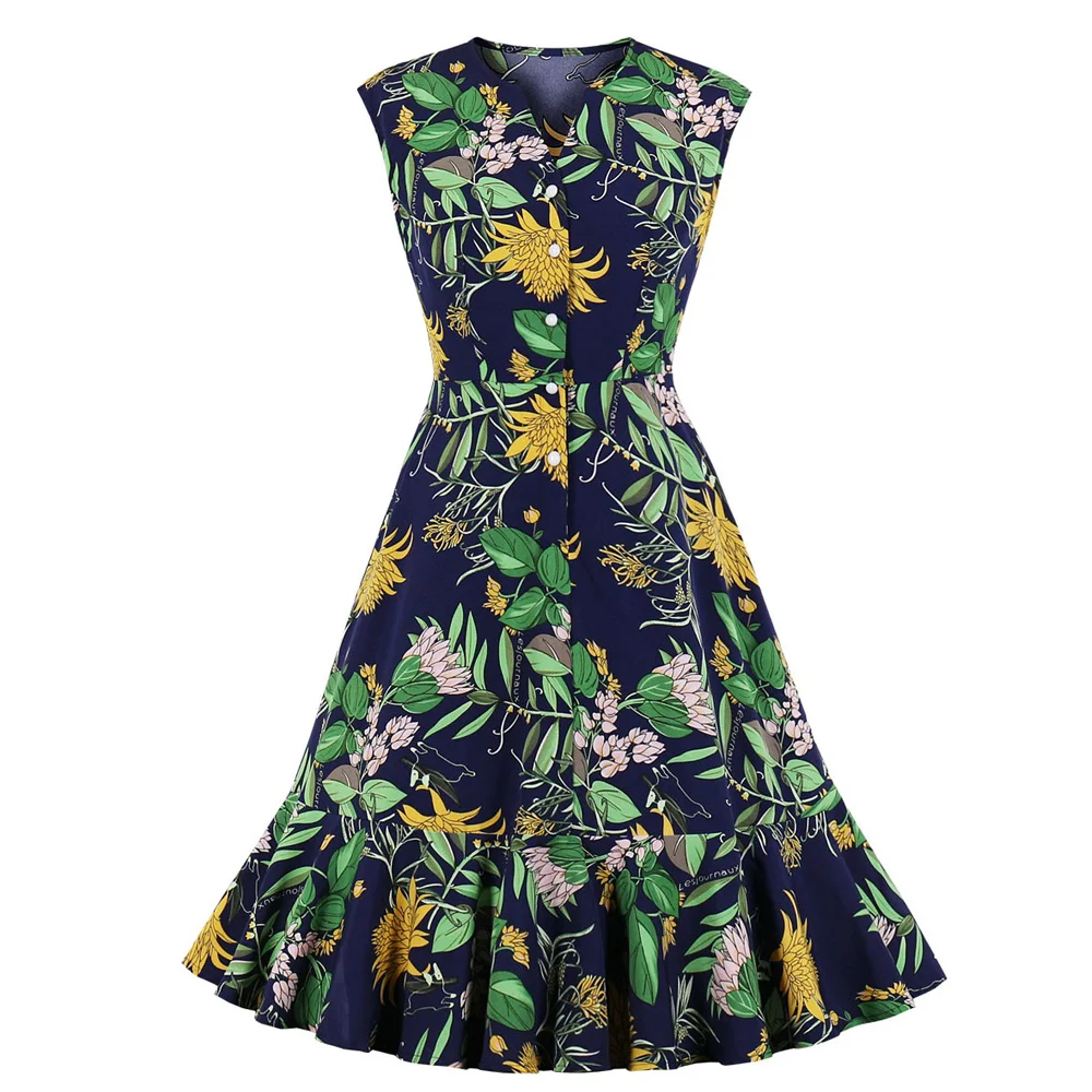 Hot Sale New Product Women'S V-Neck Ruffle Skirt Printed Sleeveless Dress