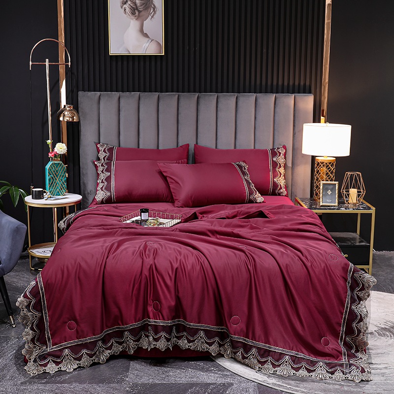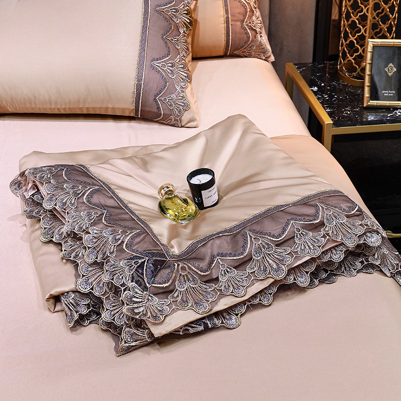 Ice Silk Four-piece Embroidered European Style Lace Edge Washable Air-conditioning Quilt