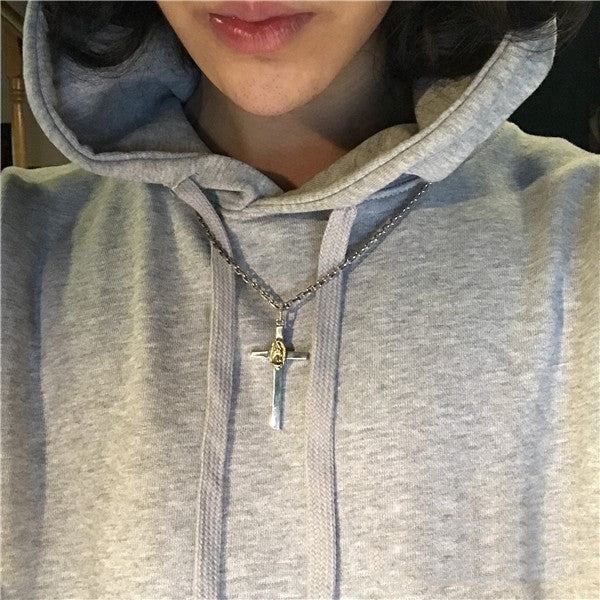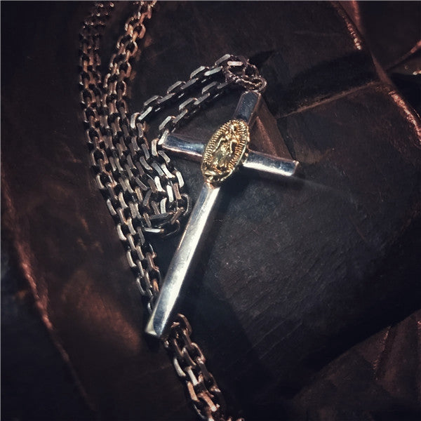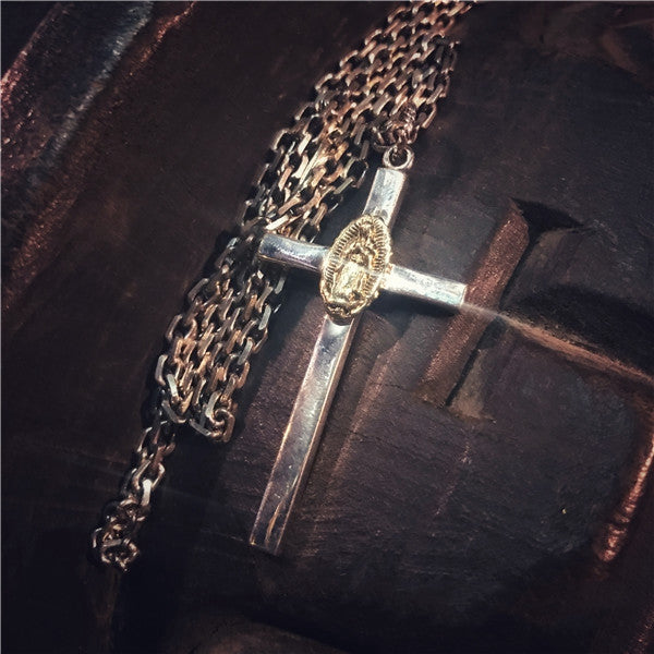Indian Style Tang Grass Relief Cross Madonna Pendant