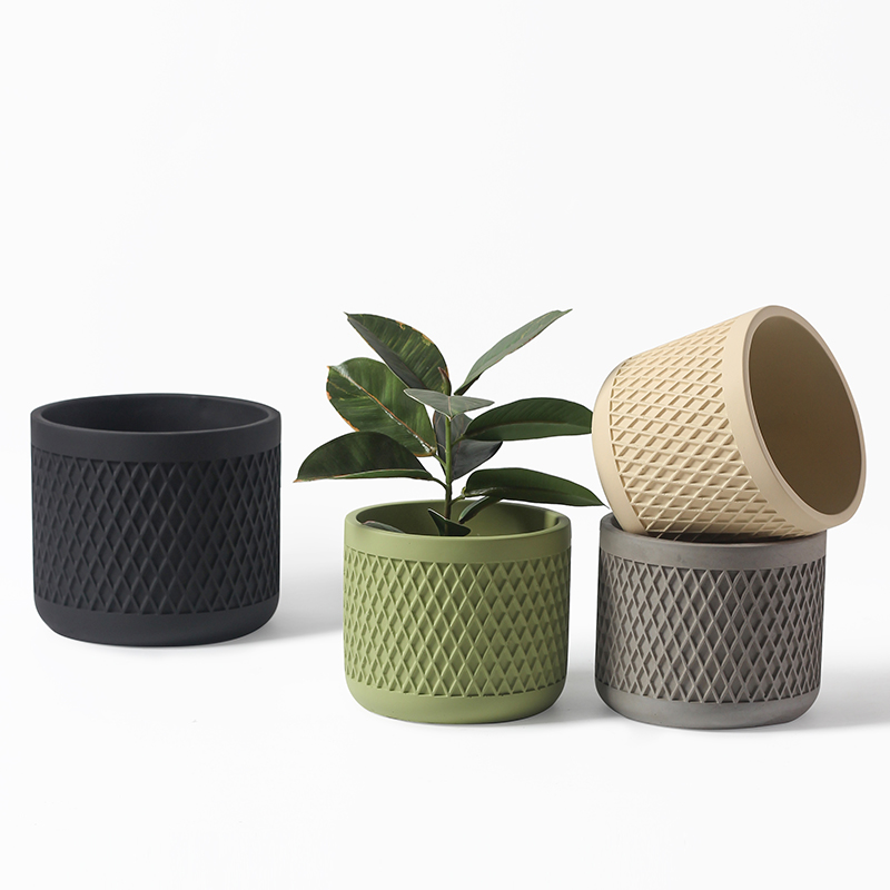 Indoor Simple Relief Diamond-shaped Cement Flowerpot