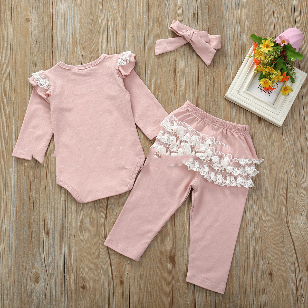 Infant And Toddler Cotton Lace Long-sleeved Harness Lace Long Pants Set