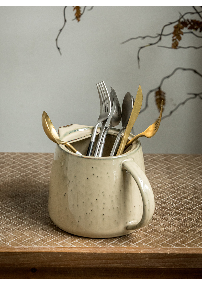Kitchen Fork Spoon And Chopsticks Storage Bucket Retro Vase Ceramic Kettle Slightly Flaw