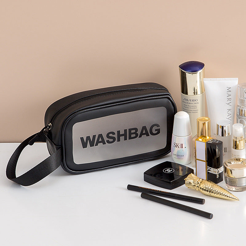 Korean Portable Large-Capacity Portable Travel Transparent Toilet Bag Pu Waterproof Scrub Cosmetic Bag Skin Care Product Storage Bag