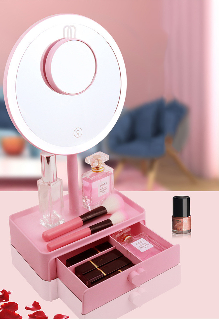 Product features: three-tone light. Long press the touch switch to adjust the brightness of the light and the design of the storage tray