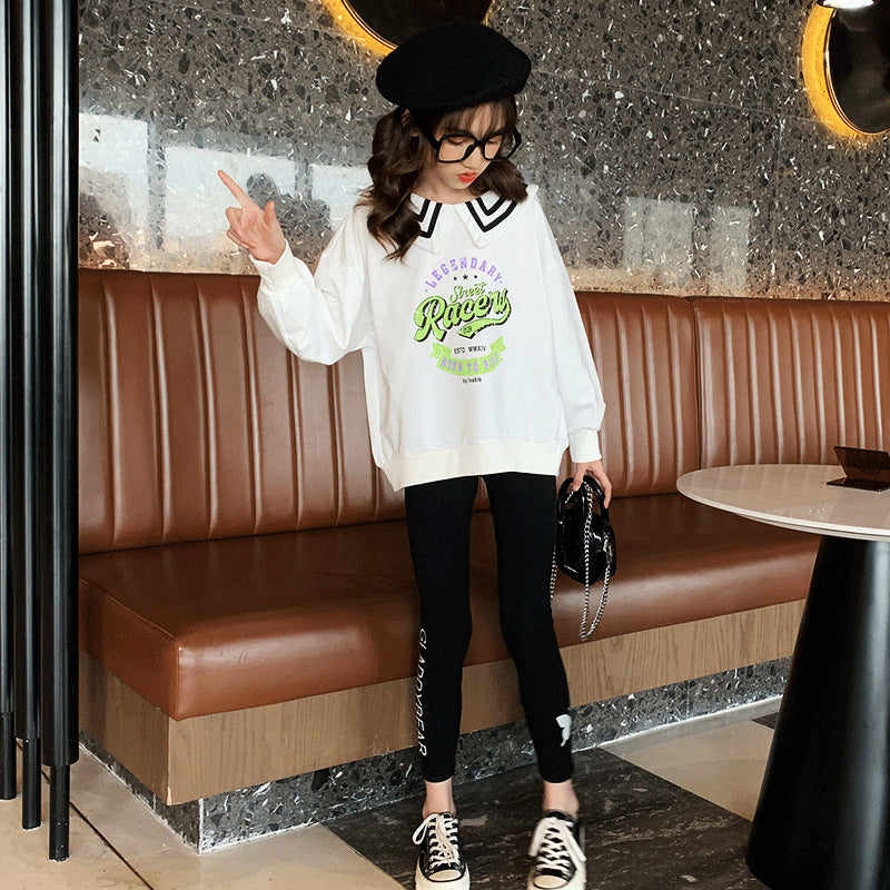 Letter Sweatshirt Leggings Two-Piece Set, Big Boy Spring And Autumn