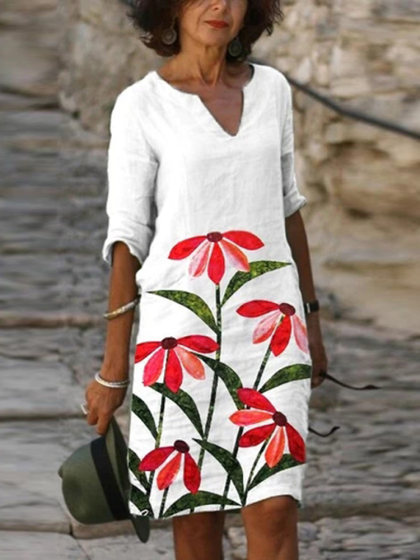 Literary Round Neck Five-point Sleeve Plus Size Dress