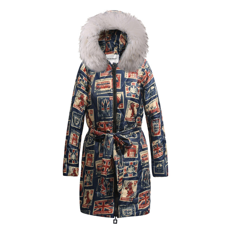 Long Plus Size Printing Retro Hooded Padded Jacket